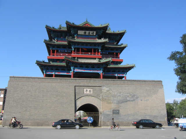 圖片說明:清遠(yuǎn)樓又名鐘樓,位于古城宣化正中。始建于明成化十八年(1482年), 是一座重搪多角十字脊歇山頂?shù)母叽蠼ㄖ。與城內(nèi)鎮(zhèn)朔樓、拱極樓成一軸線。券洞內(nèi)500 年前的鐵輪車轍明顯可見。樓內(nèi)懸有明嘉靖十八年公元年鑄造的宣府鎮(zhèn)城鐘一口,高5米,口徑7米,重約萬斤,用四根通天柱架于樓體上層中央。鐘聲悠揚(yáng)宏亮,可傳40余里,頗負(fù)盛名。該樓造型別致,結(jié)構(gòu)精巧嚴(yán)謹(jǐn)?膳c武漢黃鶴樓媲美,在國(guó)內(nèi)同屬罕見,素有“第二黃鶴樓” 之稱。