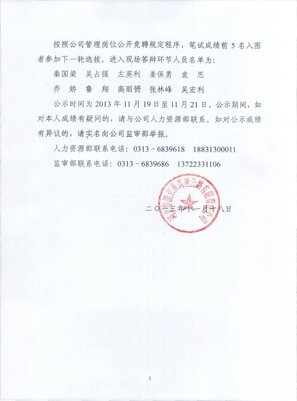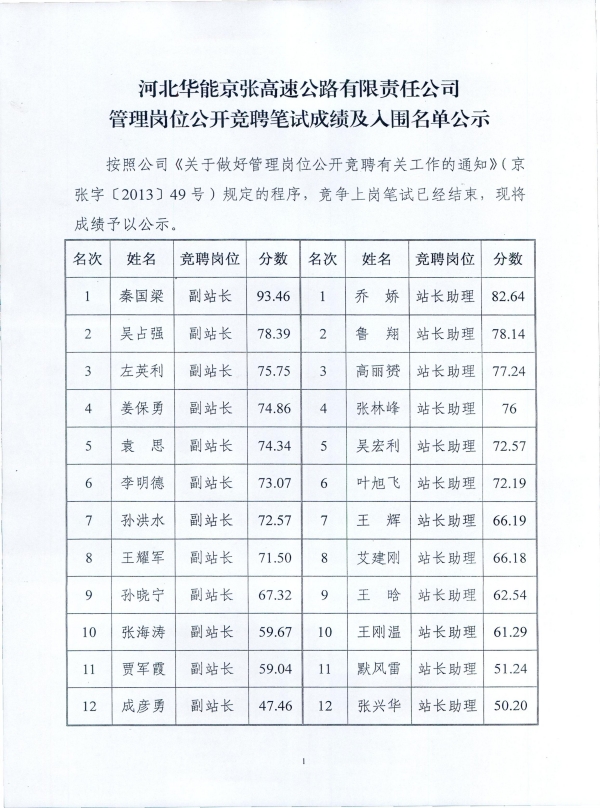 管理崗位公開競(jìng)聘筆試成績(jī)及入圍名單公示