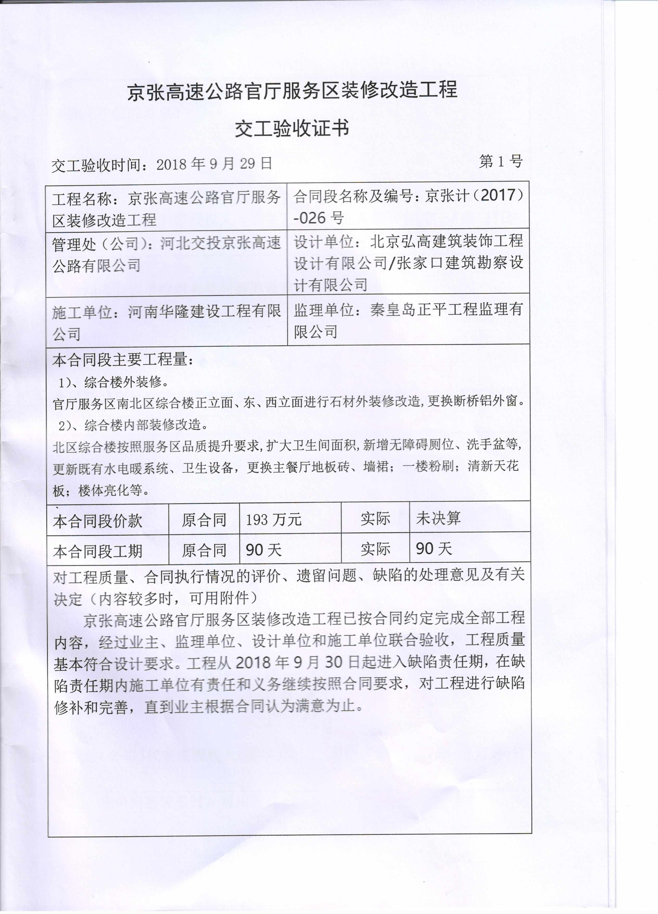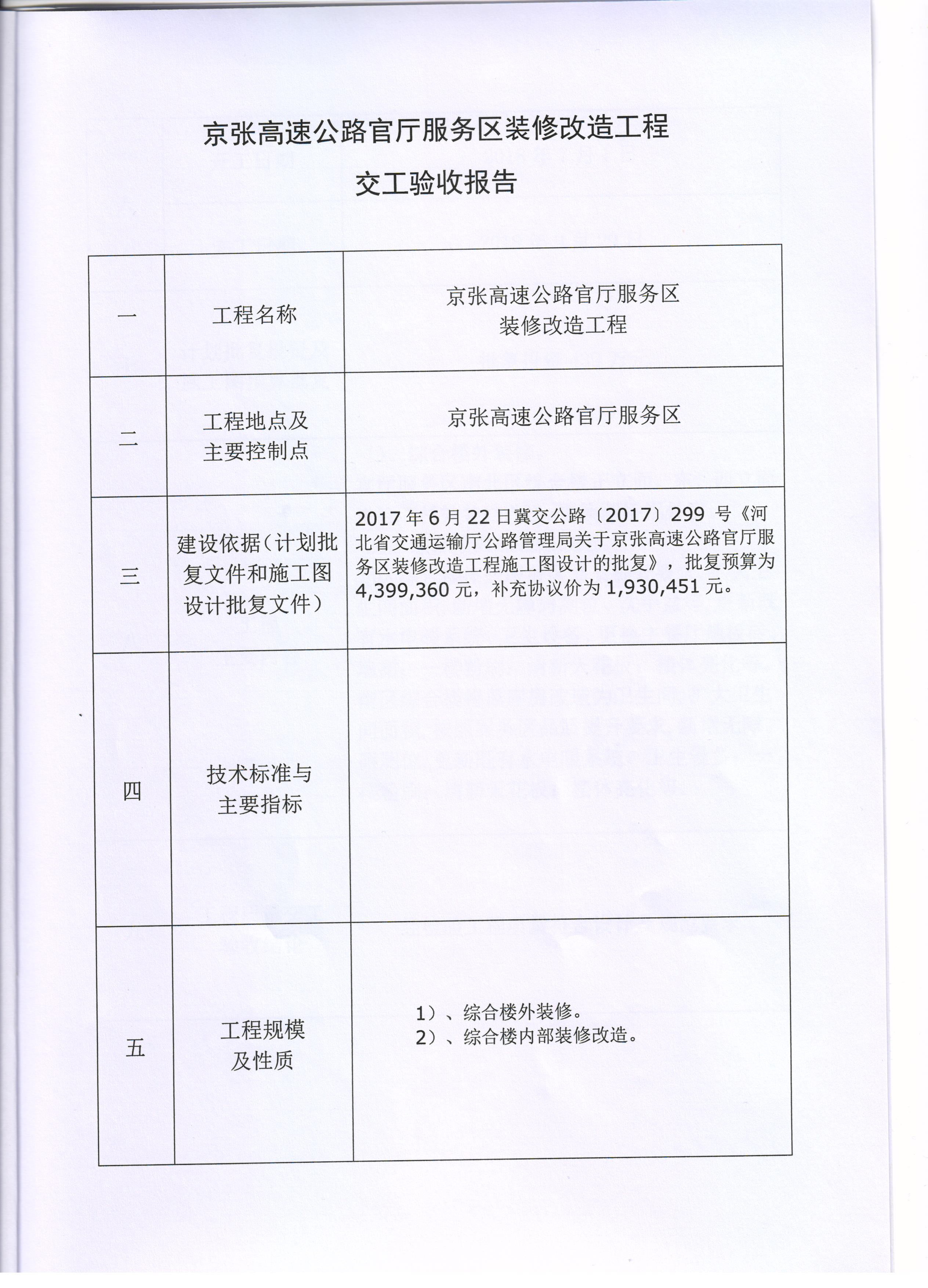 京張高速公路官?gòu)d服務(wù)區(qū)裝修改造工程交工驗(yàn)收?qǐng)?bào)告